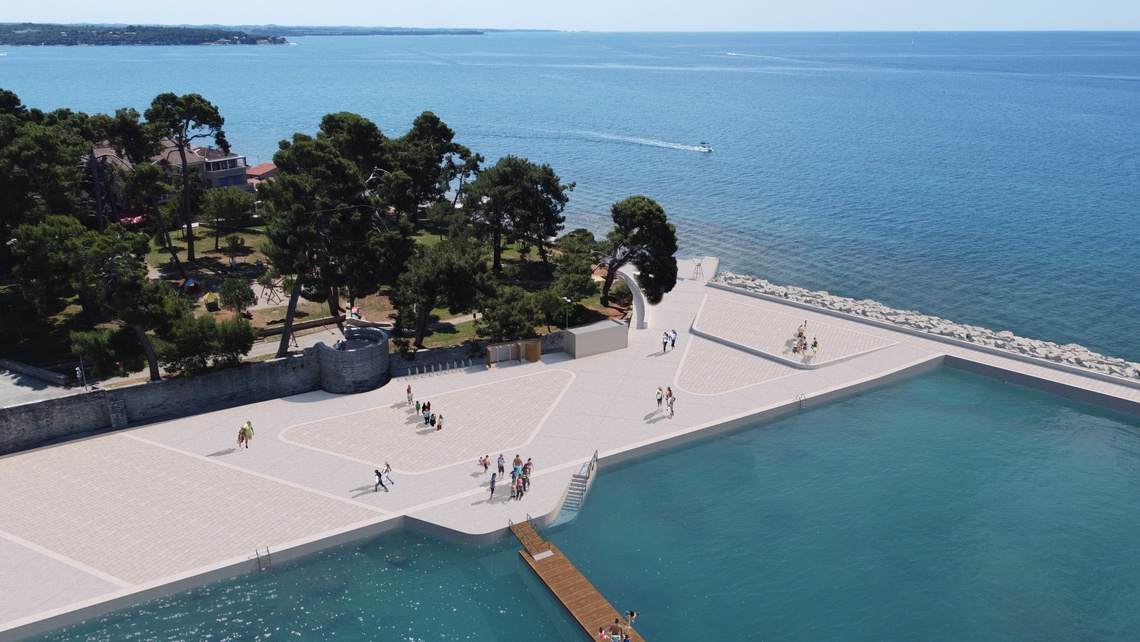 Idejnim rješenjem predviđena je rekonstrukcija plaže i lukobrana u središtu grada Novigrada, s ciljem stvaranja sigurne i atraktivne gradske zone pogodne za cjelogodišnje korištenje, maritimnu rekreaciju i razonodu. Svi elementi uređenja pridonose oživljavanju prostora koji, u neposrednoj blizini gradske jezgre, postaje gravitacijska točka lokalnog stanovništva i posjetitelja. Ukratko, ovaj obalni prostor dobiva novi prepoznatljiv i suvremeni identitet te postaje nezaobilazno boravišno i kulturno središte šireg okruženja.