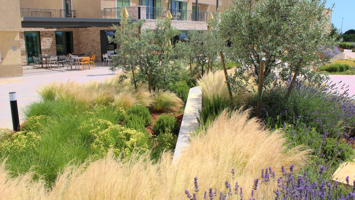 Cilj ovog projekta bio je uređenje „Pangea” kampusa globalne IT kompanije Infobip u Vodnjanu. Dizajn okoliša skladno integrira arhitekturu objekata u prostorno okruženje. Suvremenim pristupom oblikovanju, korisniku se nudi korištenje raznih sadržaja – work, sport, chill, relax. Velike i raznolike betonske ploče koje tvore mozaične forme u opločenju posebno su dizajnirane za ovu lokaciju i predstavljaju internacionalnu povezanost tvrtke s djelatnicima različitih nacionalnosti. Ova simbolična poruka oplemenjena je konstantnom izmjenom prikaza krajobraza, mediteranskim biljnim vrstama koje s fontanom, simbolom životnosti, čine neraskidivu cjelinu.