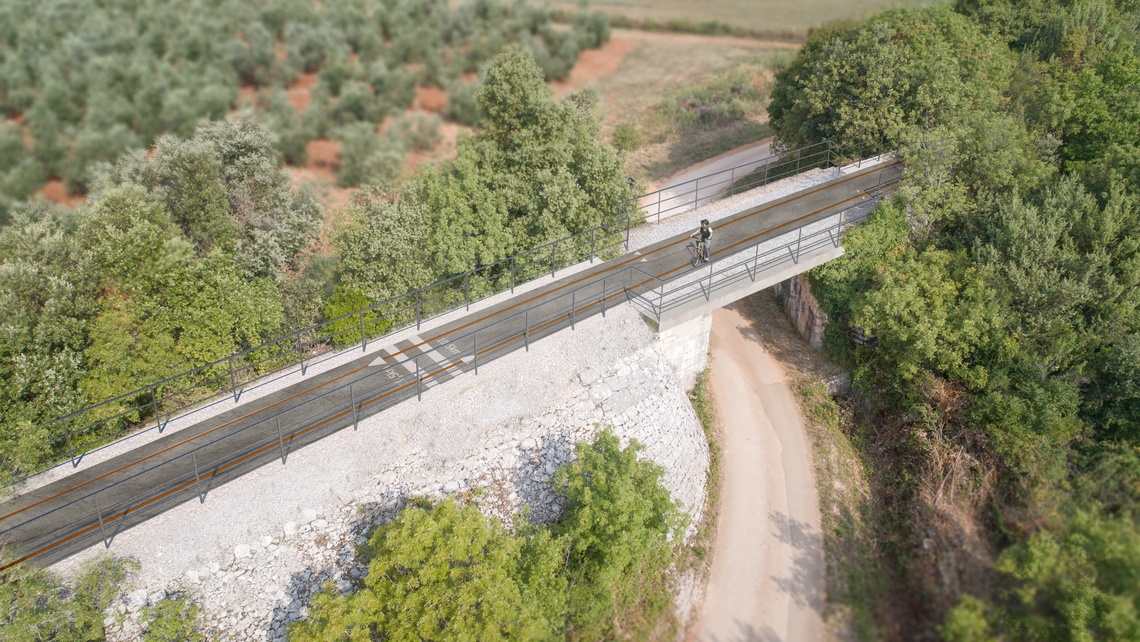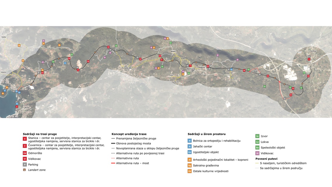 Cilj ovog idejnog rješenja jest preuređenje nekadašnje trase željezničke pruge Kanfanar – Rovinj u pješačko-biciklističku stazu s popratnim sadržajima rekreativnog, edukativnog i turističkog karaktera. Planirano je kvalitetno uređenje cijele trase duge 21,5 km s odmorištima, signalizacijom i urbanom opremom. Projekt odražava više aspekata važnih za razvoj šire okolice te iskorištavanjem postojećih resursa zapuštena prostora doprinosi obogaćivanju turističke ponude, promovira očuvanje prirodne, kulturne i industrijske baštine, potiče razvoj intermodalnosti te podupire razvoj komplementarnih aktivnosti.