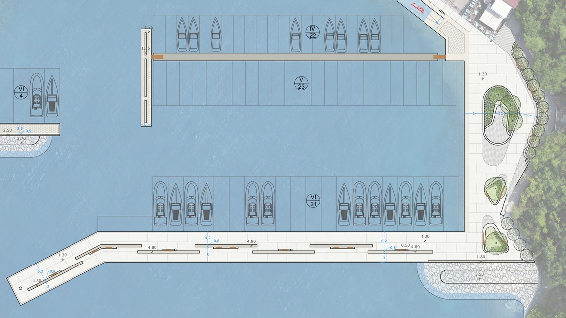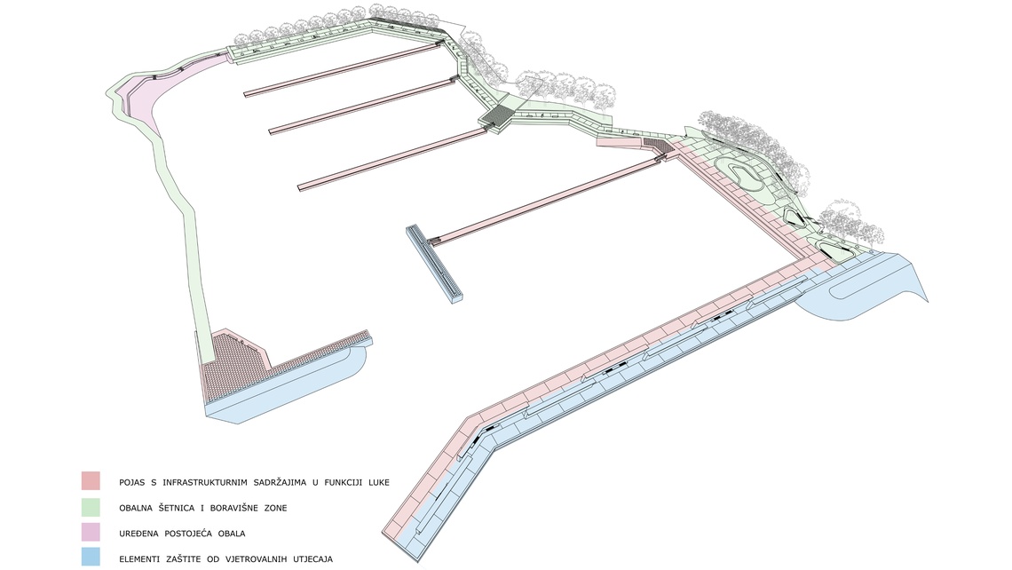 Planirano uređenje luke uključuje formiranje lukobrana, pozicioniranje plutajućih gatova te rješenje prostora u funkciji obalne šetnice.