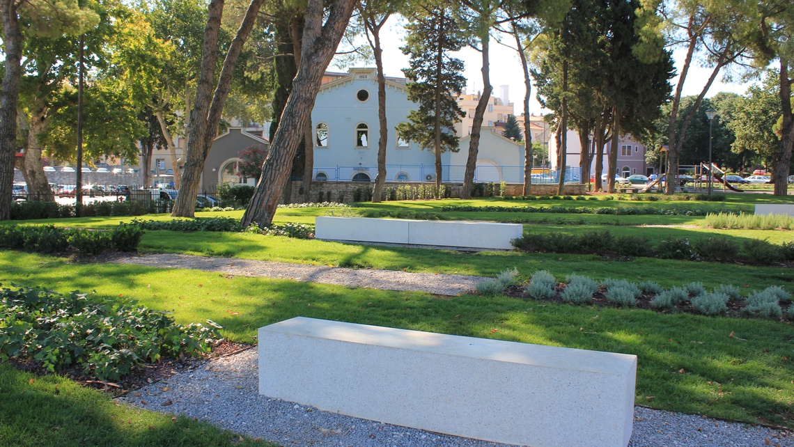 Redizajnom Titovog parka, nedaleko Arene u Puli, osvježen je njegov memorijalni karakter. Prijašnjim stanjem spontanog razmještaja bisti narodnih heroja u neuređenu parku izgubio se smisao memorijalne poruke. Moderno rješenje, s pravilnim geometrijskim formama, simbolički obilježava revolucionarno vrijeme jedne epohe i njegove heroje. Memorijalni prostor s centralnim spomenikom oblikovno je integriran u cjelovitu parkovnu skulpturu. To je mali prostorni zahvat, ali velik iskorak u filozofiji oblikovanja modernih parkova pri čemu se ovom parku dalo prepoznatljivost, a prostoru dojam poštovanja.